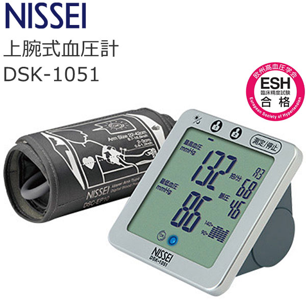血圧計 上腕式 DSK-1051 NISSEI 上腕式デジタル血圧計 健康管理 介護 看護 家庭用 医療用 ESH合格モデル セルフチェック 簡単 シンプル 自動加圧 メモリー機能