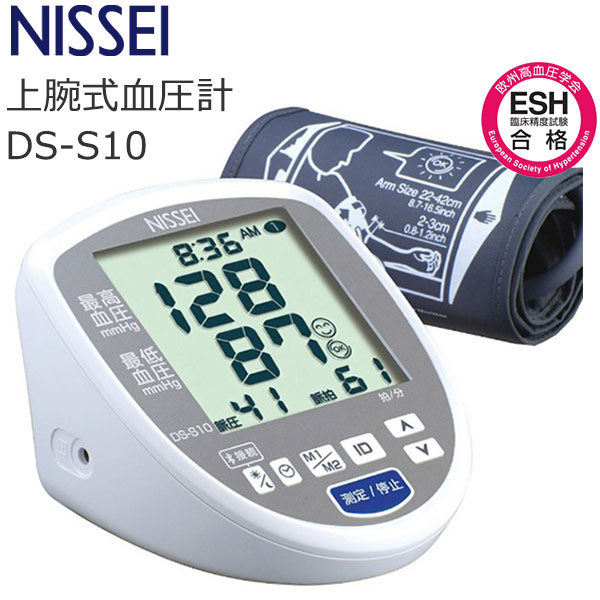 血圧計 上腕式 DS-N10 NISSEI 上腕式デジタル血圧計 健康管理 介護 看護 家庭用 医療用 ESH合格モデル セルフチェック 簡単 シンプル 自動加圧 メモリー機能