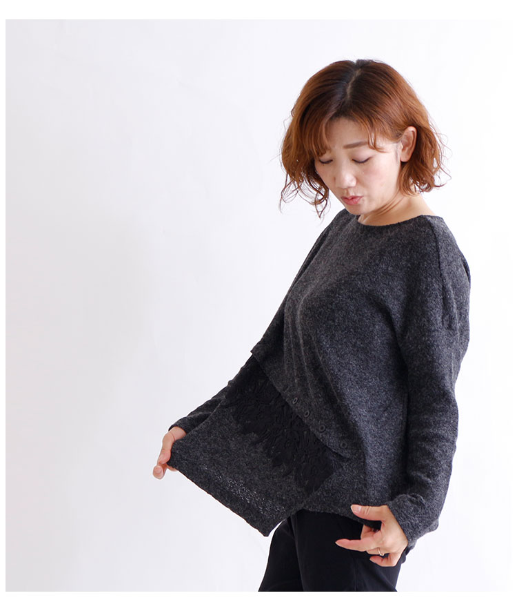 レースとボタンのラインが可愛く、女性らしさも演出します。