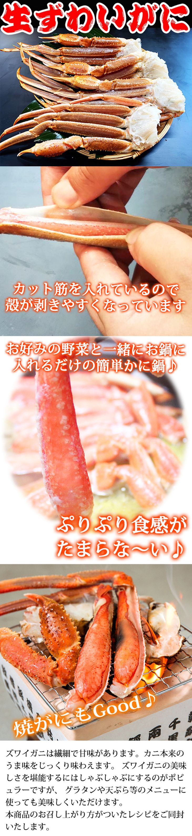 このずわいがにの美味しさを堪能するにはしゃぶしゃぶにするのがポピュラーですが、 グラタンや天ぷら等のメニューに使っても美味しくいただけます。