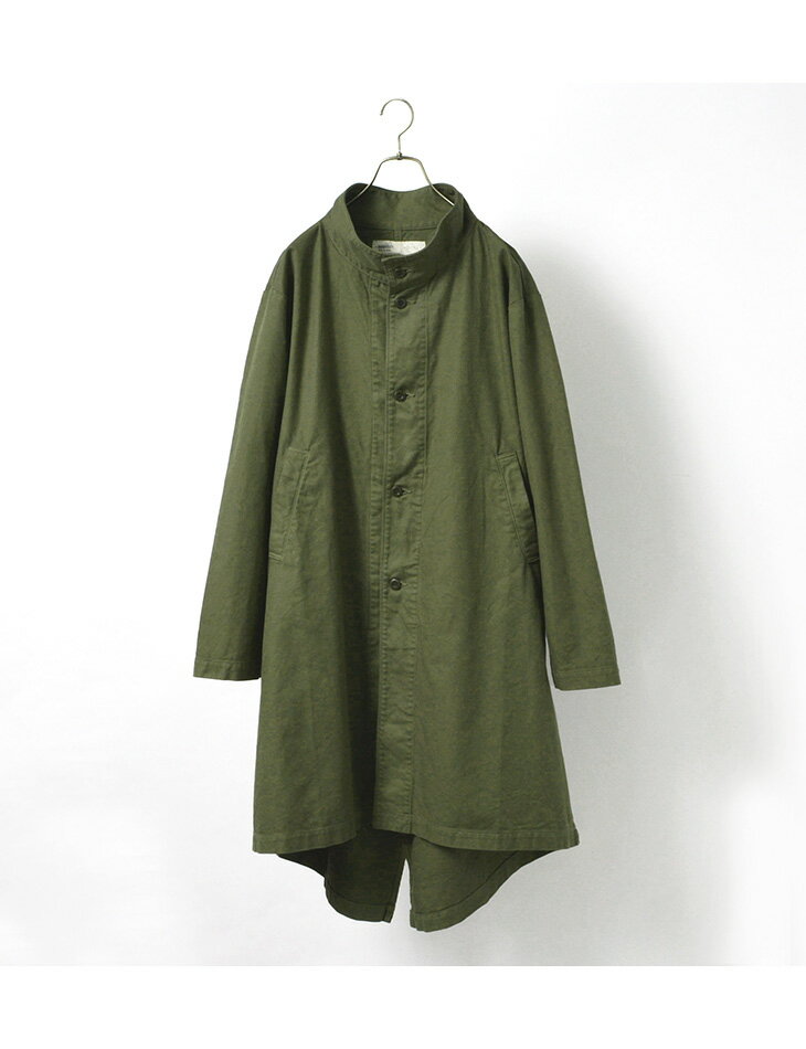旬を楽しむミリタリーオーバーコート ビンテージな風合いのあるコットンサージを使用したミリタリーコート。
